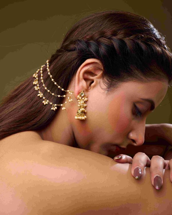 Perfect for weddings, festive occasions, or cultural celebrations, this earchain adds subtle movement and shimmer, enhancing traditional and fusion ensembles alike. Its elegant design ensures a regal presence while maintaining comfort and wearability.