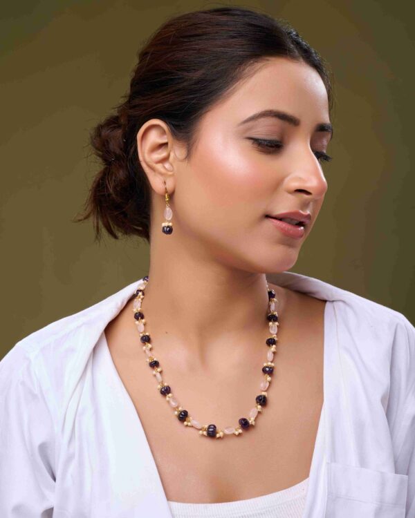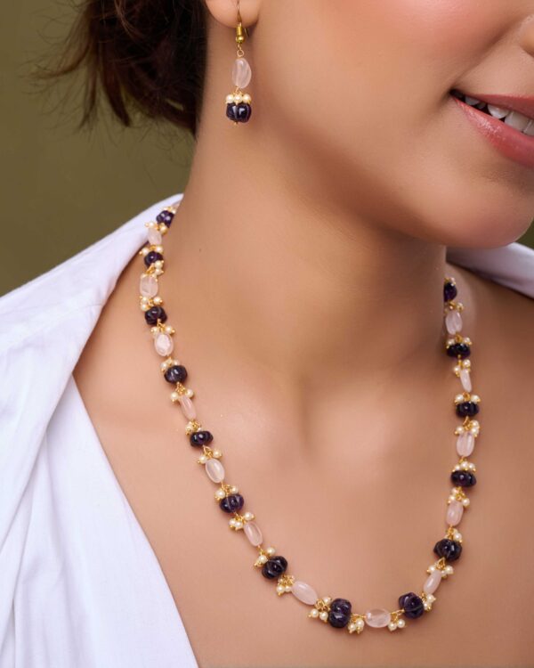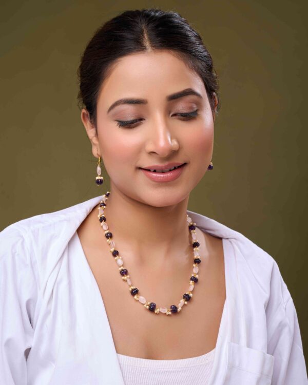 Lightweight yet striking, this necklace is perfect for women who love minimal designs with a touch of sophistication. Its versatile appeal makes it ideal for both casual outings and special occasions—pair it with a flowy kurta, an elegant saree, or even a chic western outfit for a pop of color and refined style. The Amethyst Purple Bloom Necklace is more than just jewelry—it’s a celebration of grace, charm, and everyday luxury.