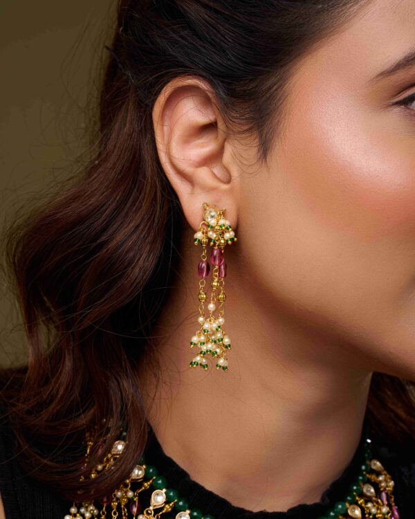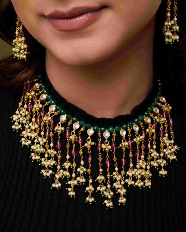 Material: Green base beads, kundan, rhodolite, pearls, alloy base