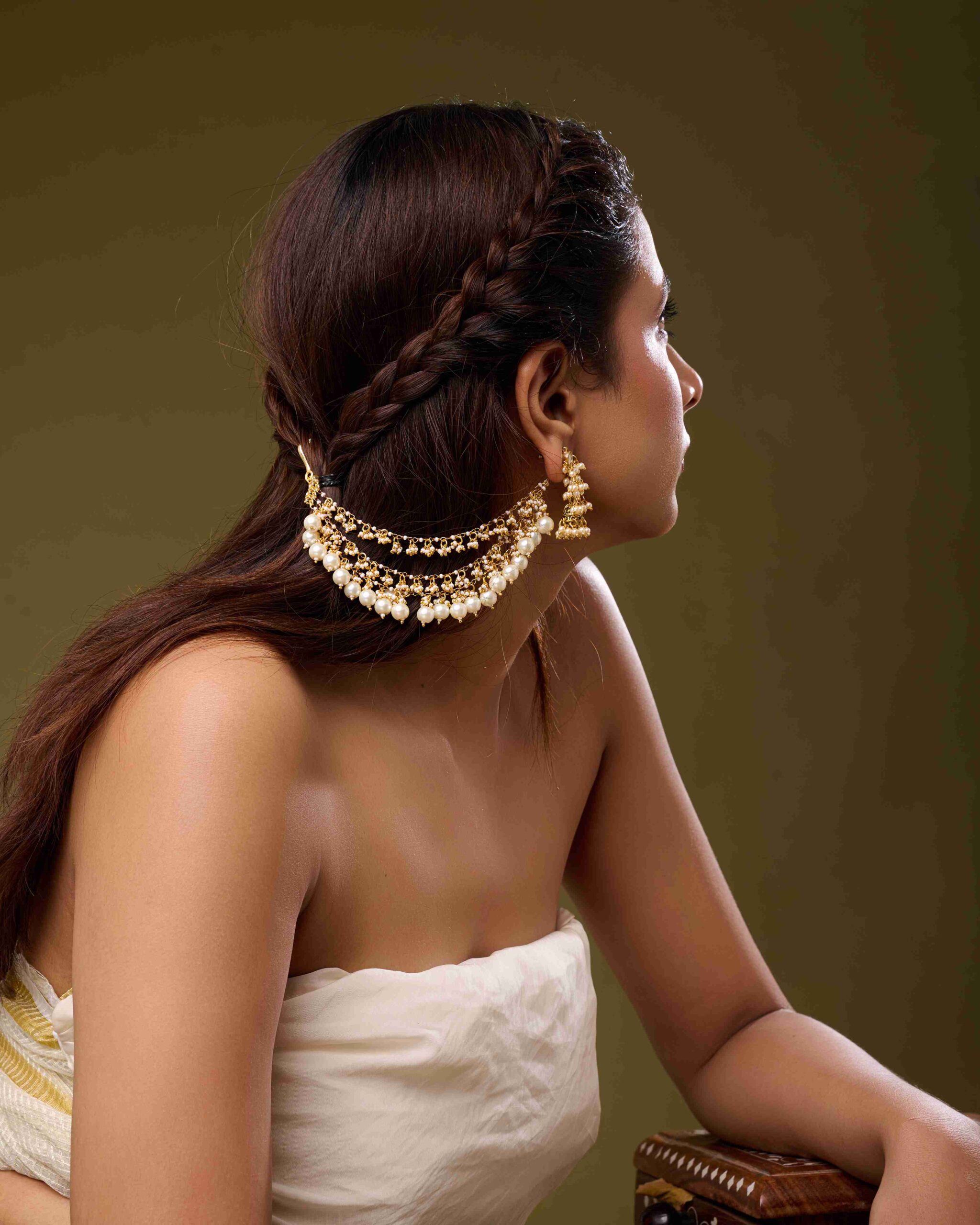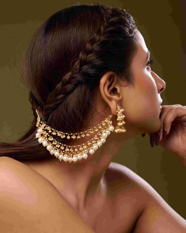 Designed to drape gracefully along the ear, it complements both traditional and contemporary looks, making it perfect for weddings, festive celebrations, or special occasions. Pair it with matching earrings or statement necklaces to complete a regal ensemble.