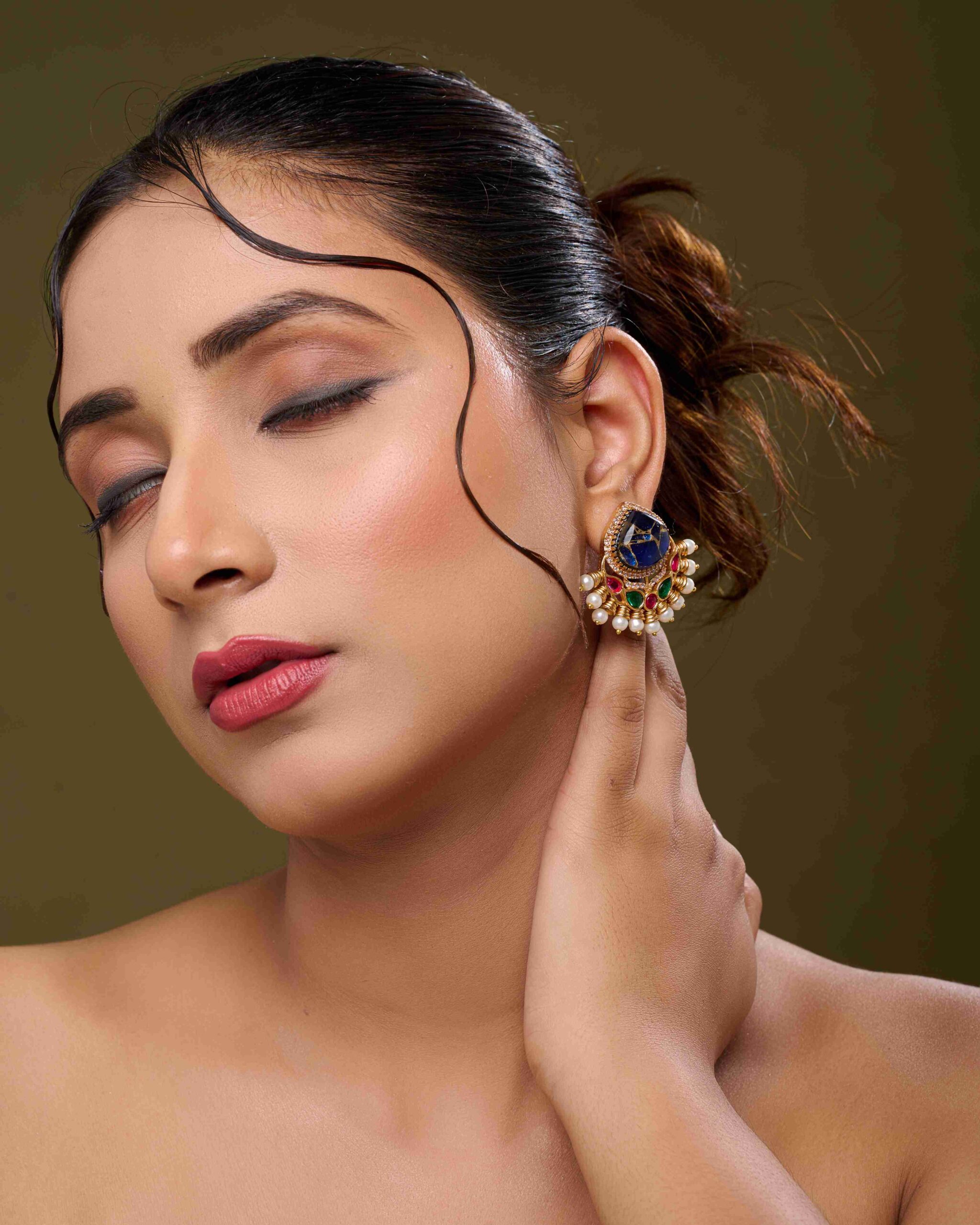 The Orvara Drops Earrings are a perfect blend of contemporary sophistication and traditional craftsmanship. Crafted with doublet stones and gold-plated brass, these earrings feature a delicate drop design that adds movement, shimmer, and understated luxury to any ensemble.