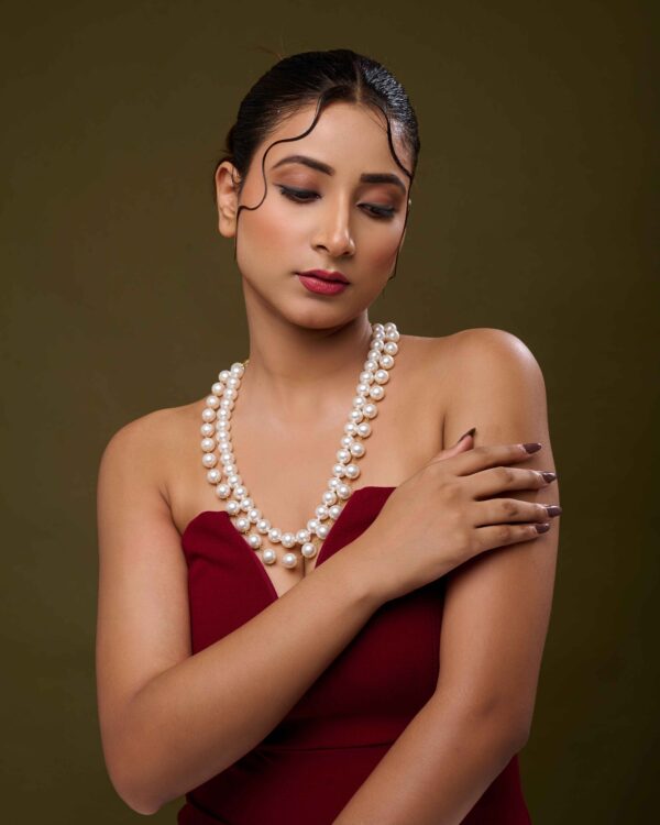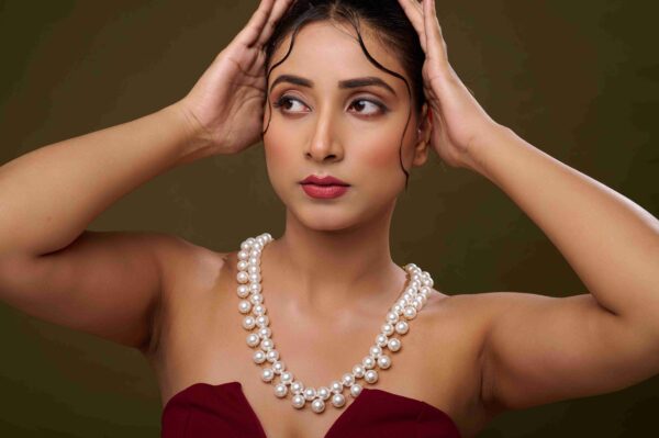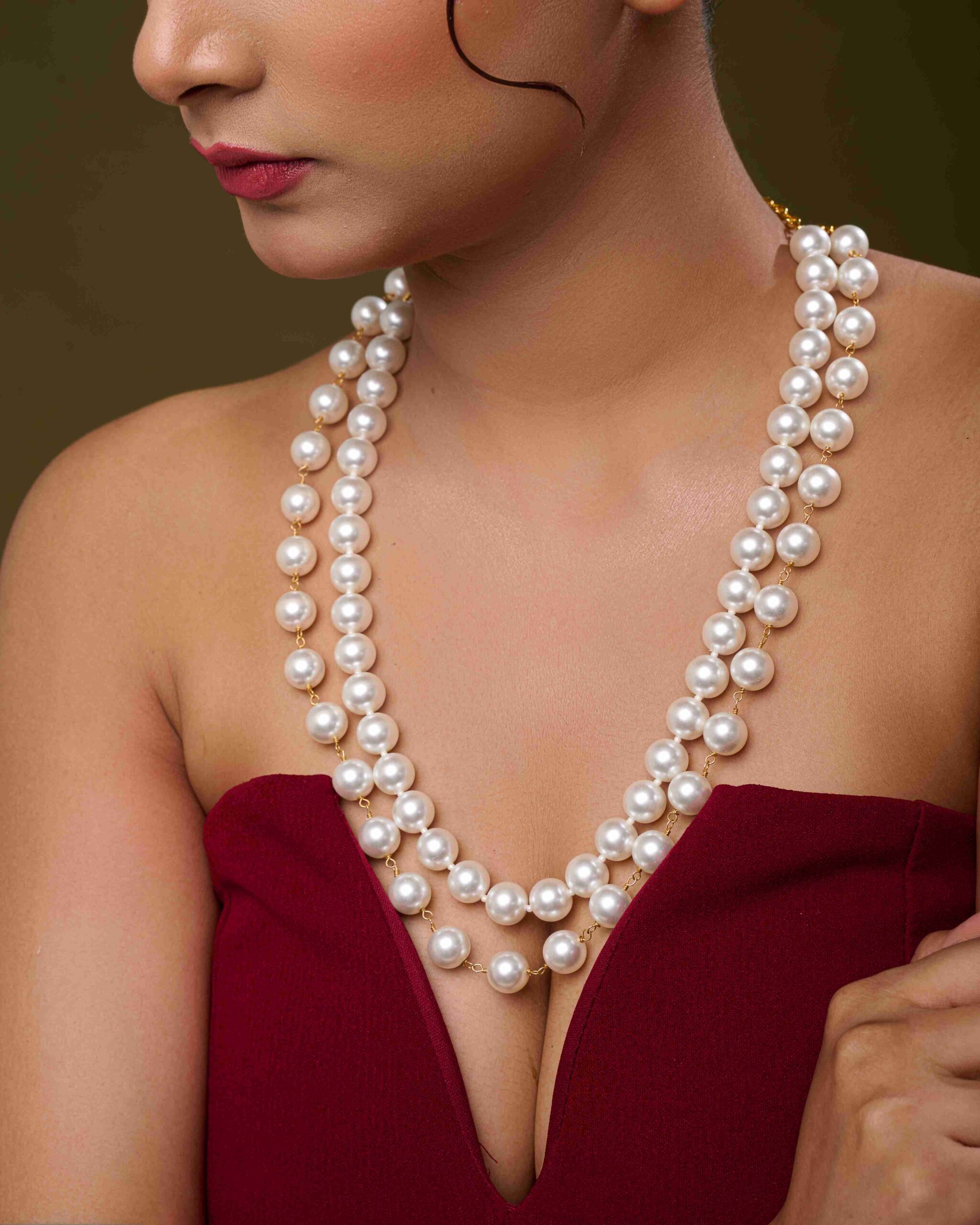 The Serene Pearl Necklace is a celebration of sophistication and understated luxury. Crafted with lustrous white pearls, this necklace exudes a classy and timeless charm that complements both contemporary and traditional ensembles.