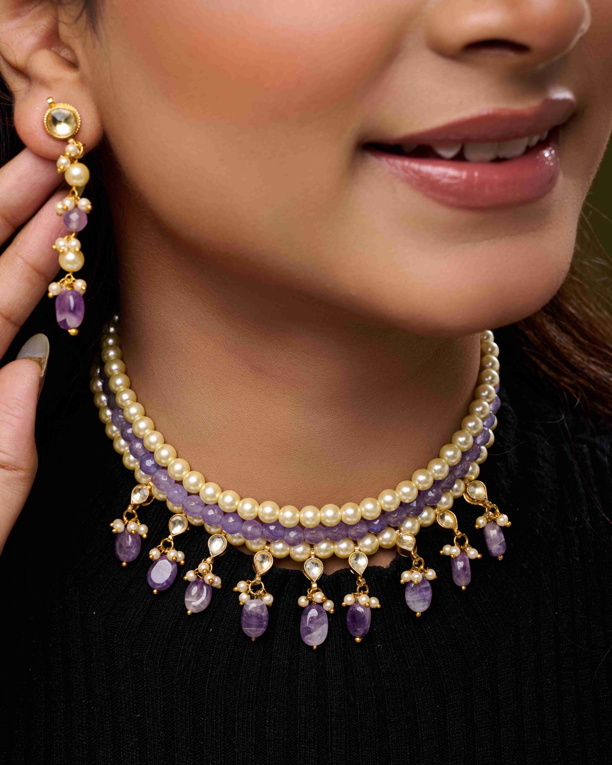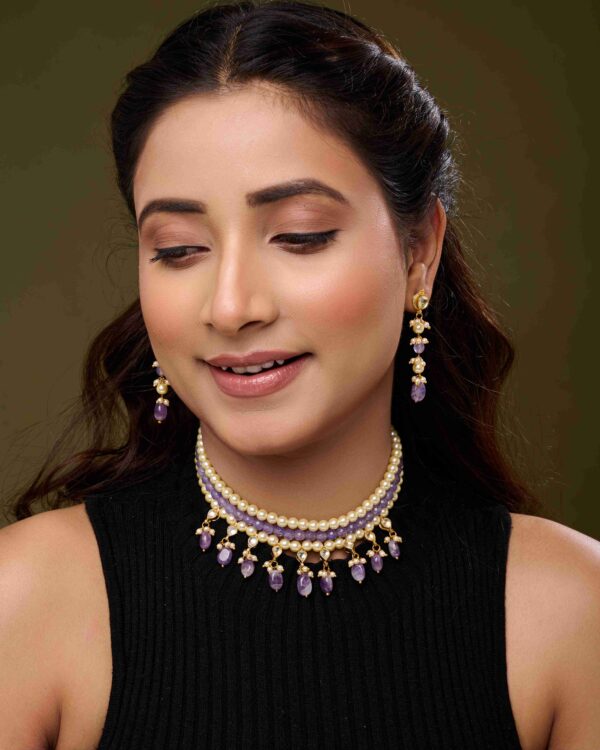 Designed to sit gracefully around the neckline, each layer is meticulously arranged to create depth, dimension, and a regal aura. Perfect for weddings, festive occasions, or grand soirées, this choker elevates any outfit with its luxurious design.